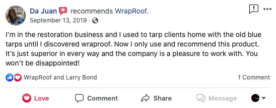 "It was literally raining in my home after a hurricane. The installation was so easy, they were in and out in a couple hours!"